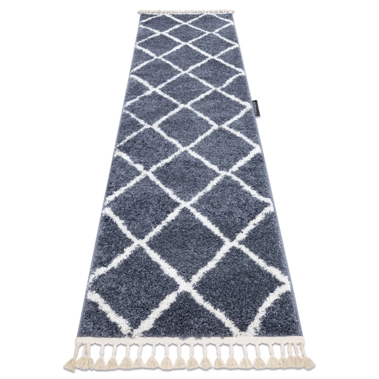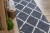 Szary dywan z geometrycznym wzorem, który idealnie wypełni długi korytarz, nadając mu nowoczesny charakter.