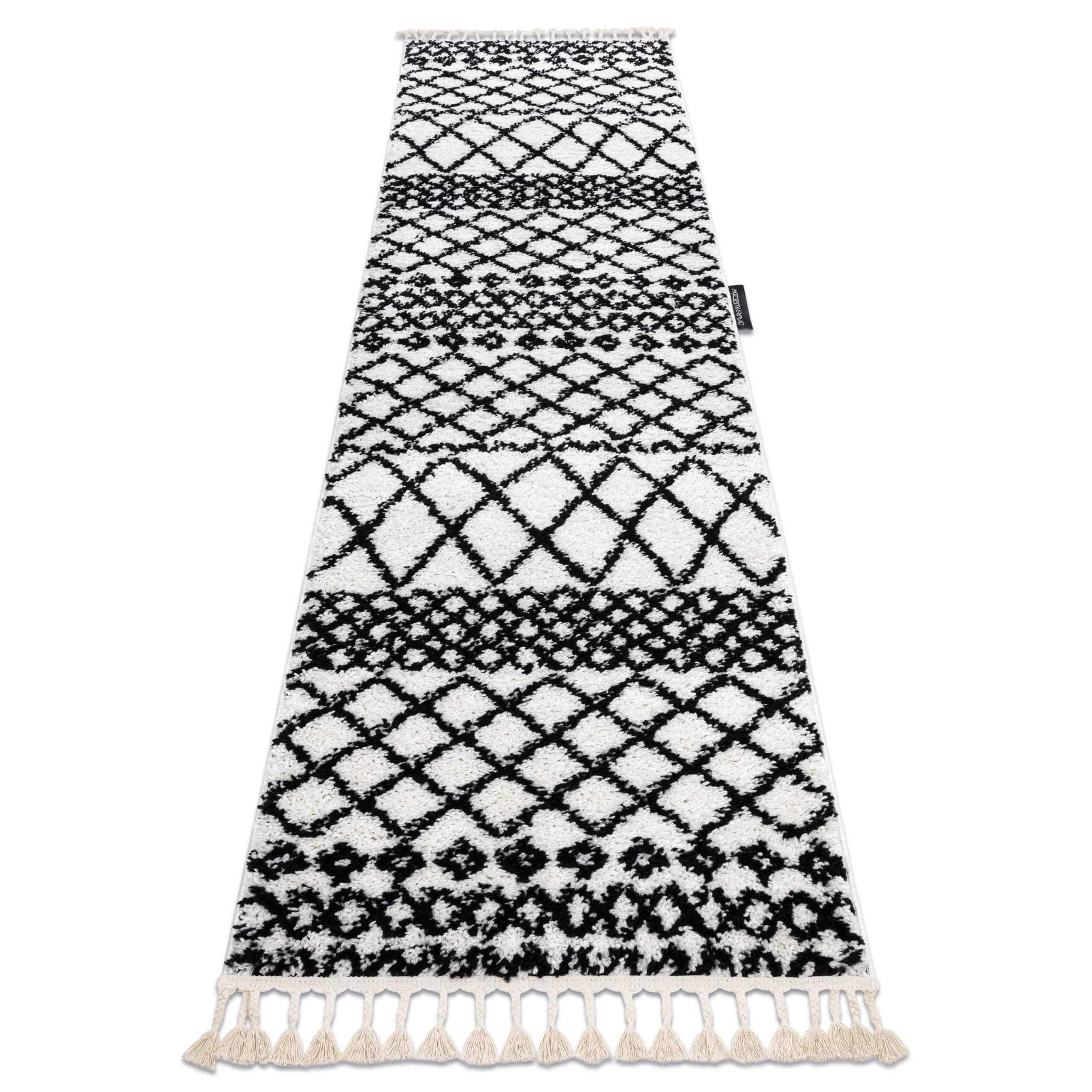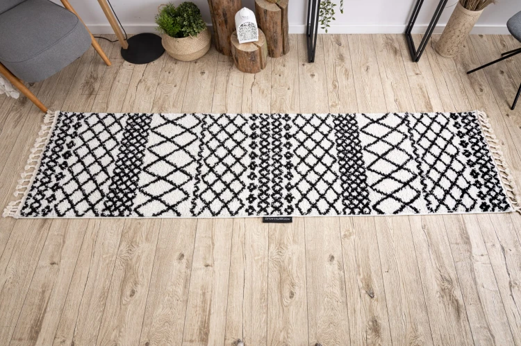 Biały dywan z geometrycznym wzorem, który rozjaśni korytarz i doda mu nowoczesnego charakteru.