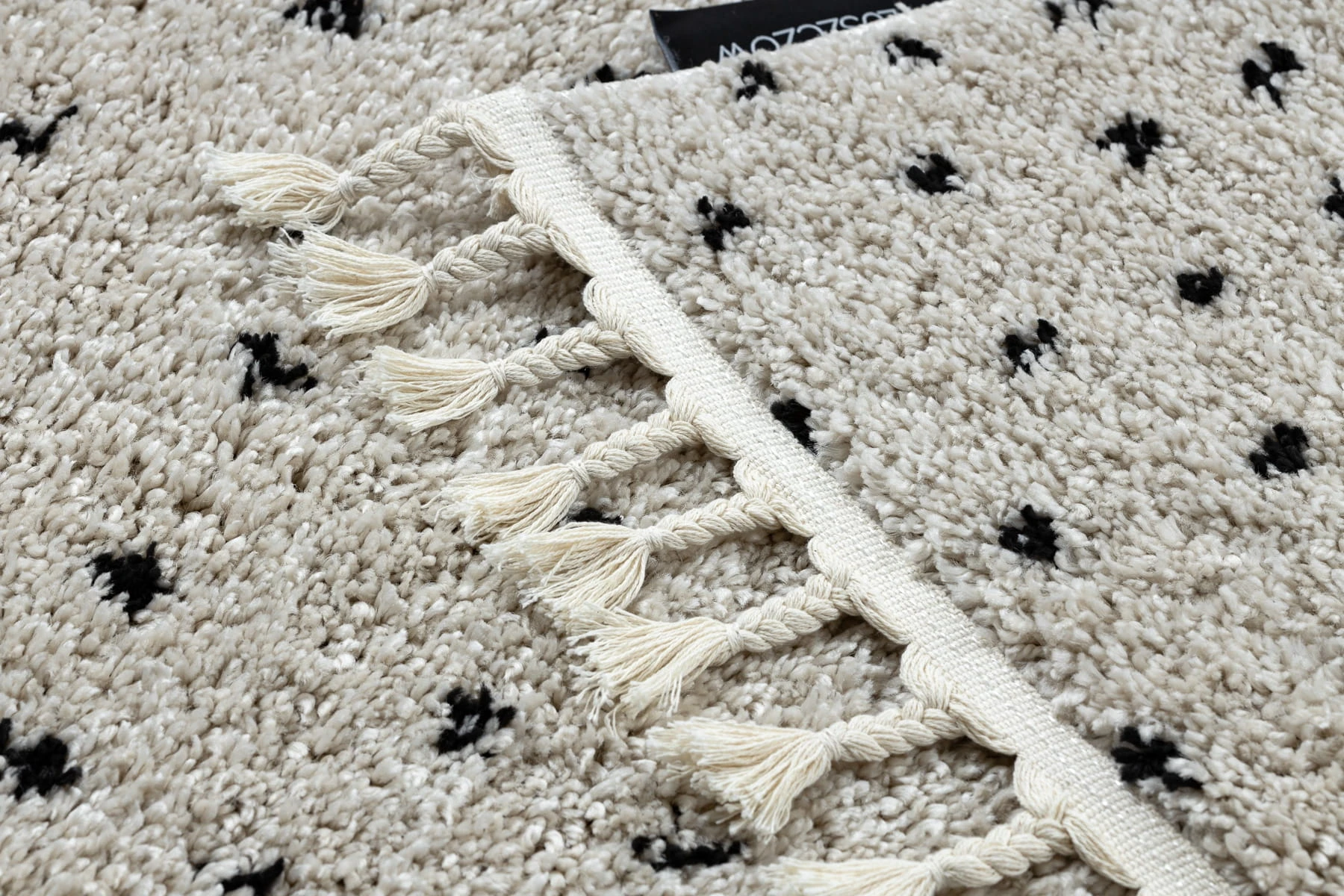 Kremowy dywan z geometrycznym wzorem w kropki, który rozjaśni korytarz ciepłym, stonowanym akcentem.
