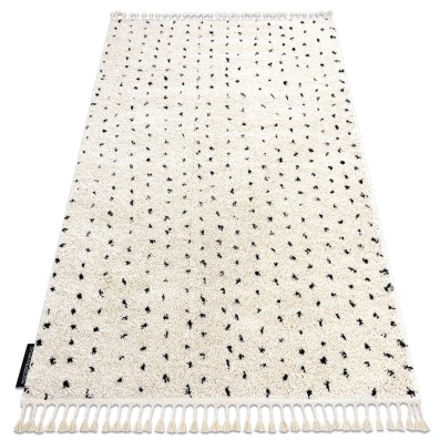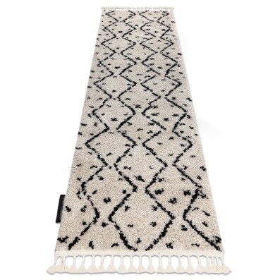 Kremowy dywan shaggy z runem 25 mm i berberyjskim wzorem zygzak, który ożywi korytarz geometrycznym akcentem.