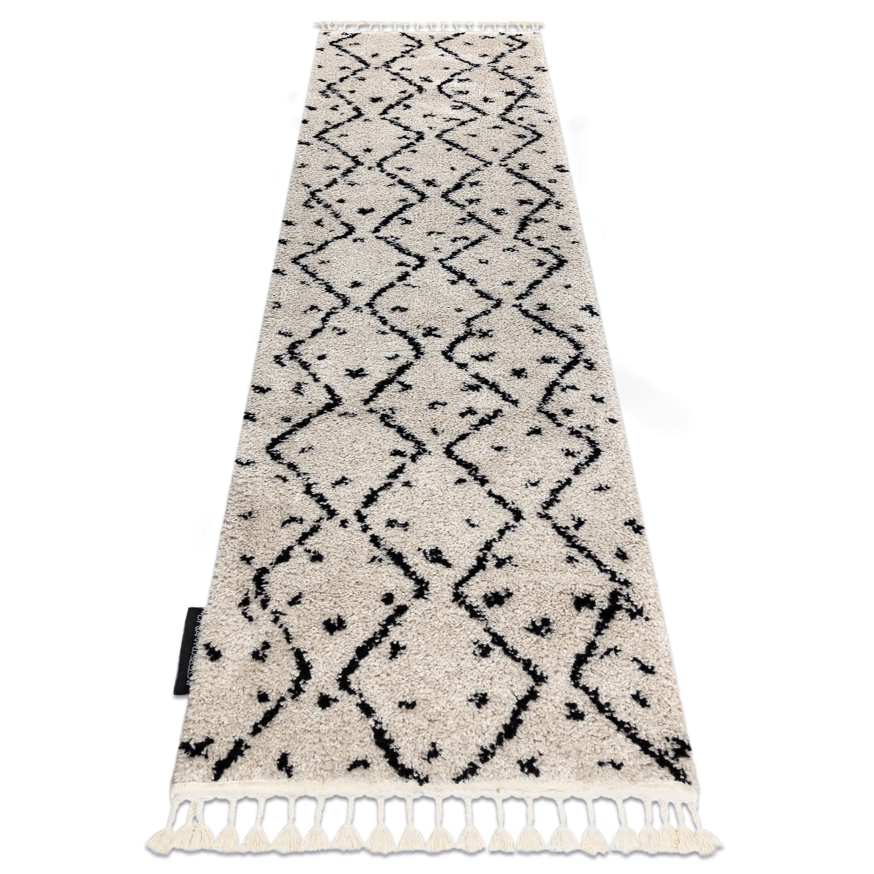 Kremowy dywan z geometrycznym wzorem zygzaka, który doskonale wypełni długi korytarz, dodając mu nowoczesnego charakteru.