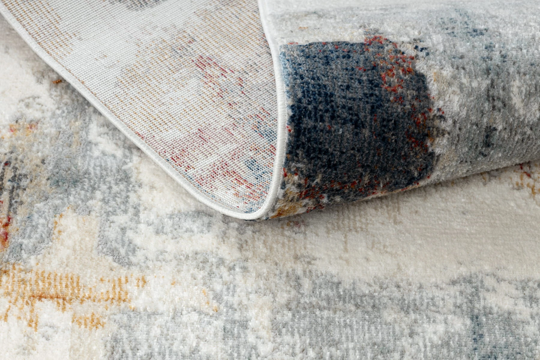 Biało-różowy dywan z abstrakcyjnym wzorem, który doskonale ożywi długi korytarz delikatnym, pudrowym akcentem.
