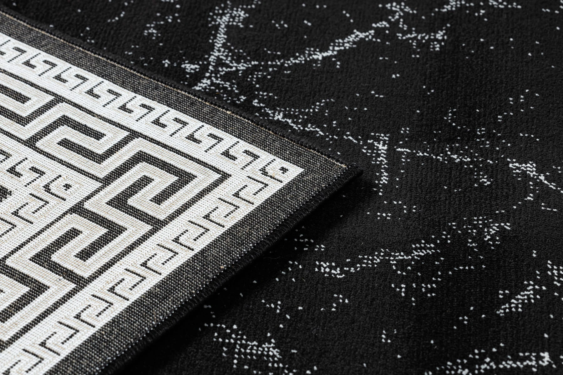 Czarno-szary dywan z klasyczną grecką ramką, który elegancko wypełni długi korytarz, nadając mu ponadczasowy charakter.