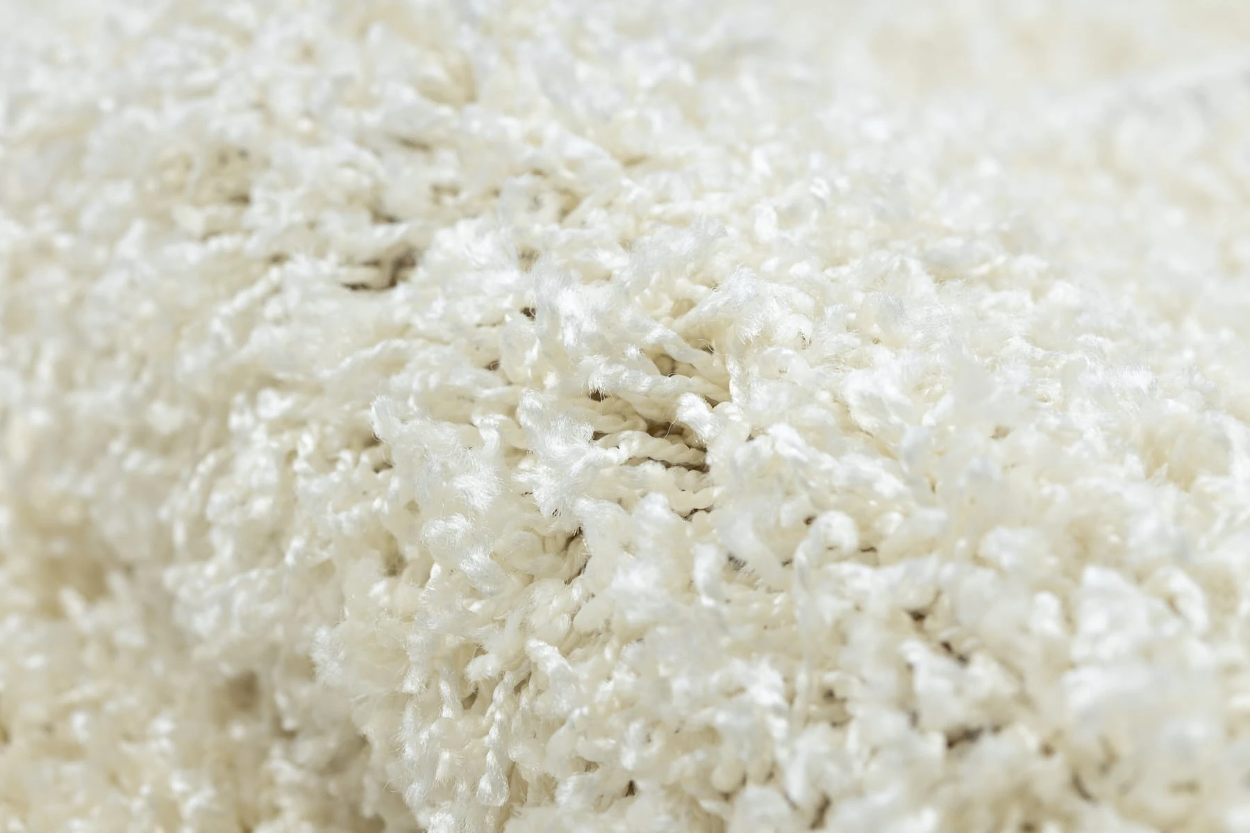 Kremowy dywan shaggy z runem 50 mm, który idealnie wypełni długi korytarz, tworząc przytulną atmosferę pod stopami.