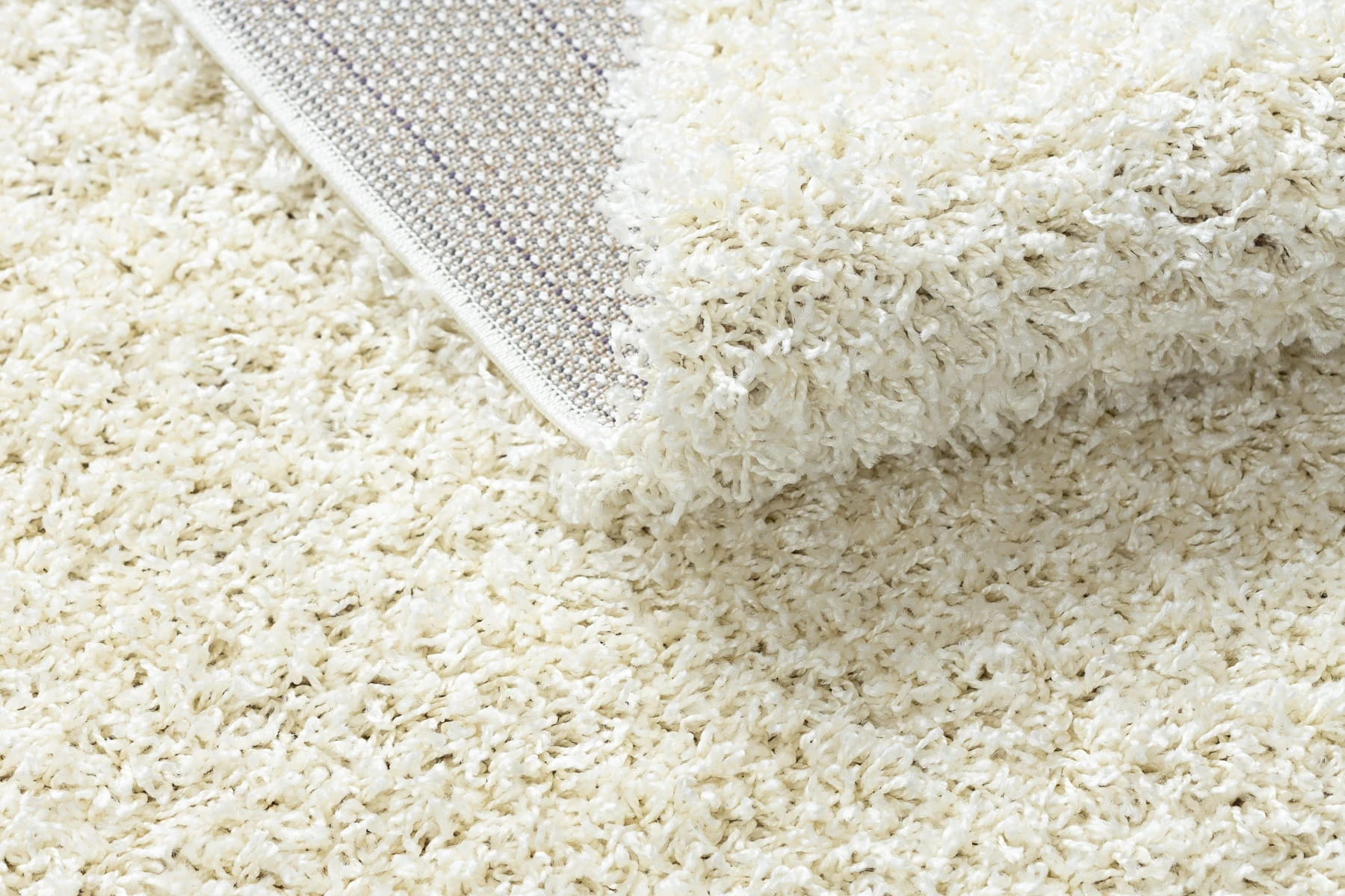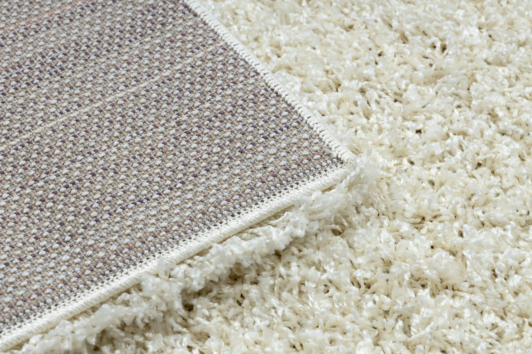 Kremowy dywan shaggy z runem 50 mm, który idealnie wypełni długi korytarz, tworząc przytulną atmosferę pod stopami.