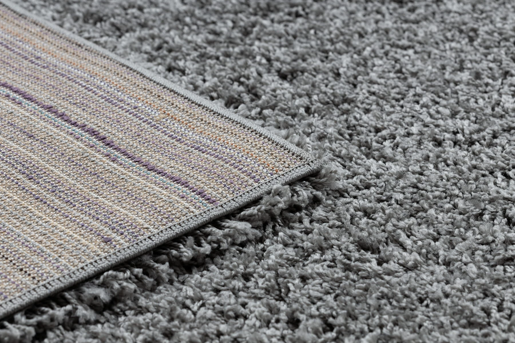 Szary dywan shaggy z runem 50 mm, który idealnie wypełni długi korytarz, tworząc przytulną i komfortową strefę przejściową.