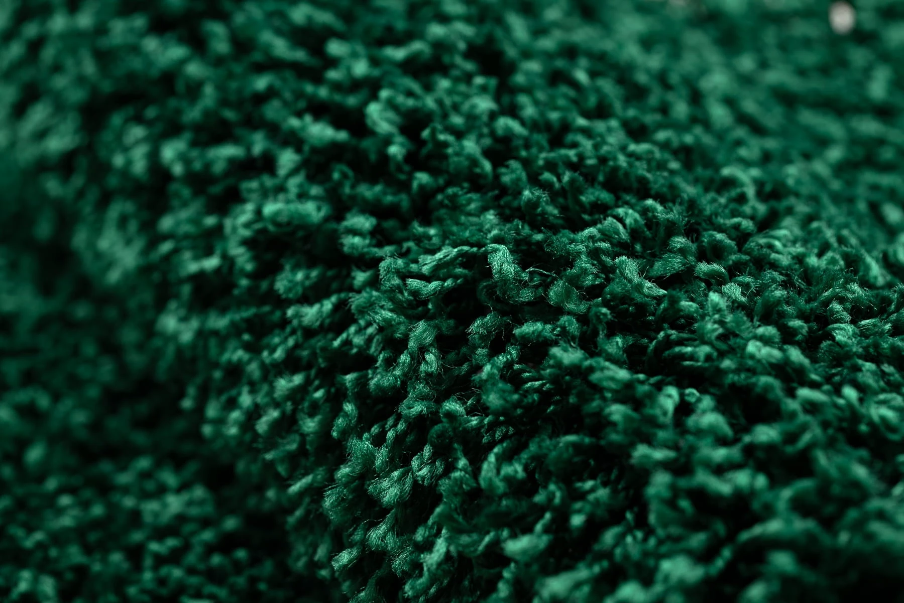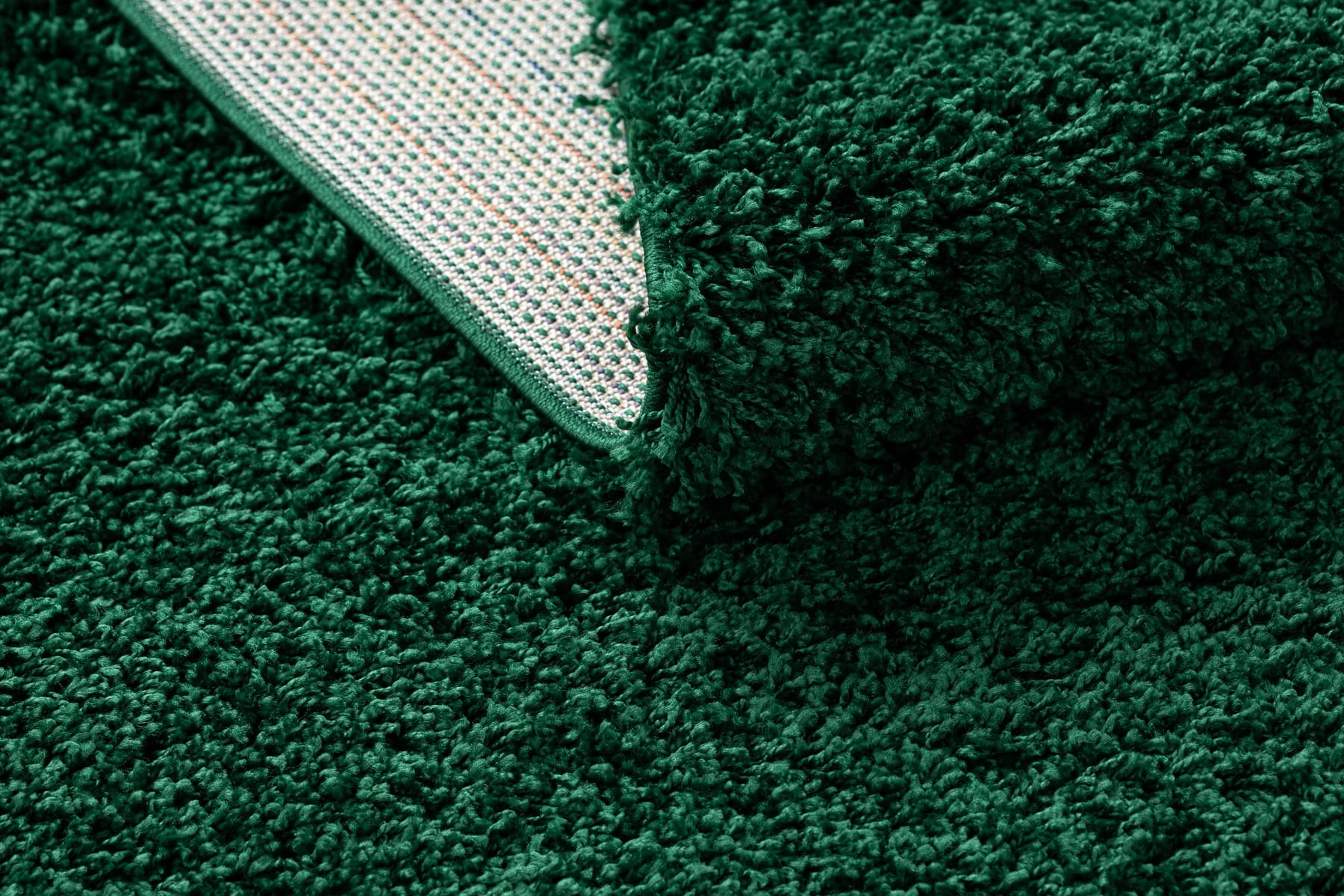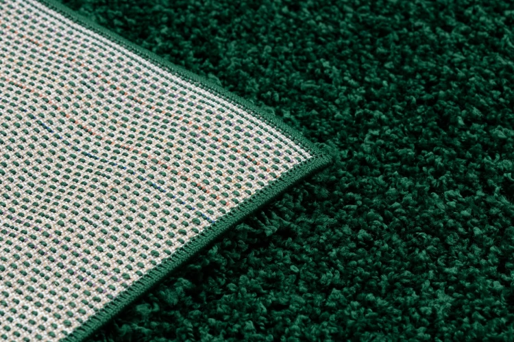 Jednokolorowy dywan shaggy w butelkowej zieleni z runem 50 mm, który nada korytarzowi elegancki charakter i stworzy przyjemną atmosferę w całym domu.