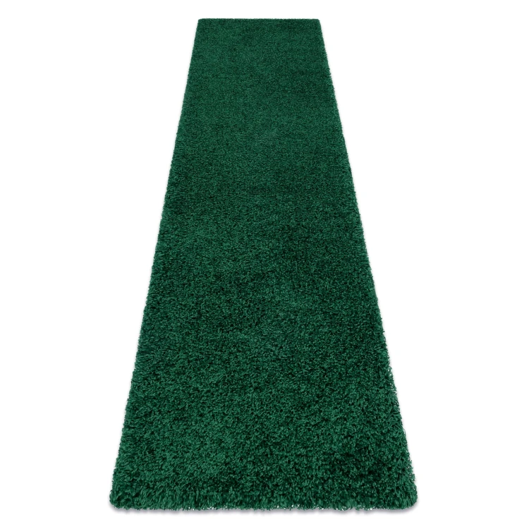 Jednokolorowy dywan shaggy w butelkowej zieleni z runem 50 mm, który nada korytarzowi elegancki charakter i stworzy przyjemną atmosferę w całym domu.