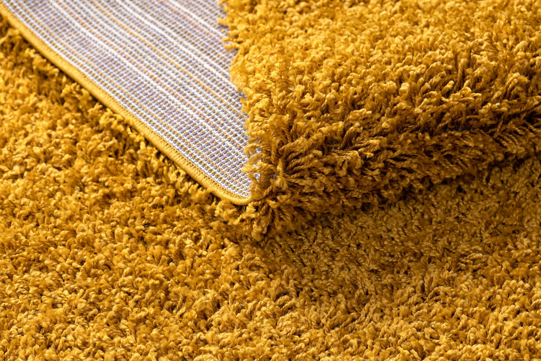 Złoty dywan shaggy z runem 50 mm, który doda korytarzowi ciepły, elegancki charakter i stworzy przytulną atmosferę.