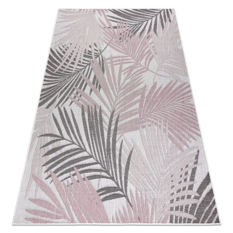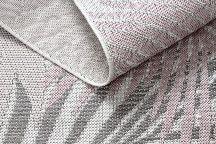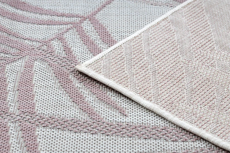 Różowy dywan z roślinnym wzorem liści palmy, który wprowadzi do korytarza delikatny, naturalny akcent.