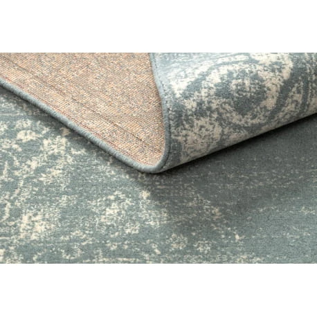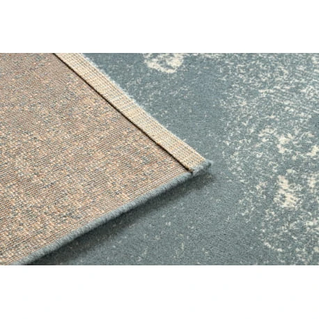 Niebiesko-beżowy dywan z wełny z abstrakcyjnym wzorem, który wprowadzi do salonu elegancki, stonowany charakter.