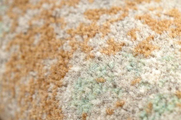 Odkurzaj dywan raz w tygodniu. Świeżą plamę zetrzyj w ciągu 15 minut — delikatnie od krawędzi do środka, nie szorując. Używaj chłodnej wody i łagodnego detergentu do wełny. Nigdy nie używaj gorącej wody oraz środków z tlenem aktywnym. Raz w roku oddaj do profesjonalnej pralni.