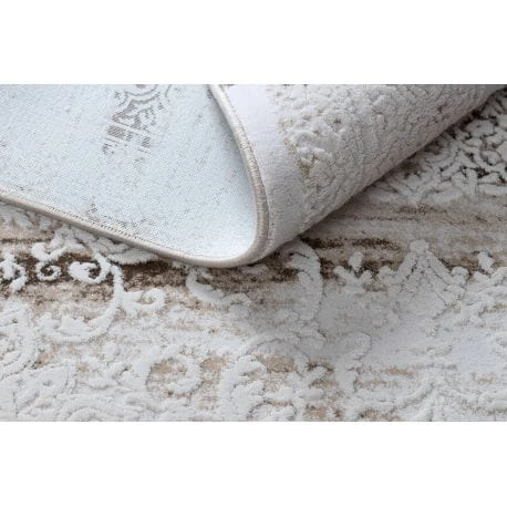 Elegancki dywan w kolorze kości słoniowej z abstrakcyjnym ornamentem, który doskonale wpisze się w jasne wnętrza salonu lub pokoju.
