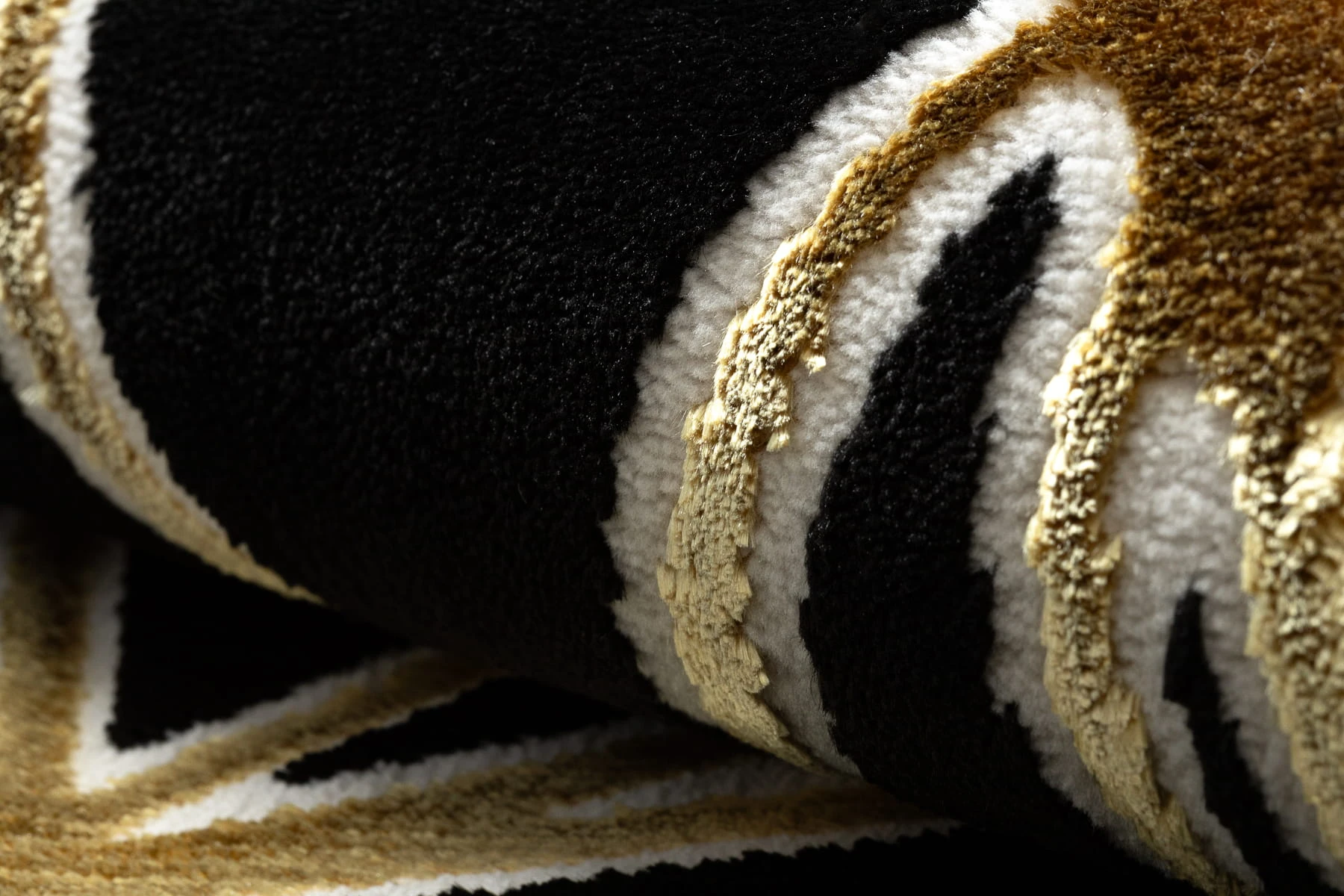 Czarno-złoty dywan z geometrycznym wzorem, który nada korytarzowi elegancki charakter i podkreśli jego nowoczesny styl.