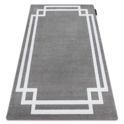 Biało-szary dywan z klasycznym wzorem greckiego klucza w ramce, który nada salonowi elegancki, ponadczasowy charakter.