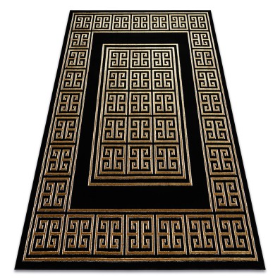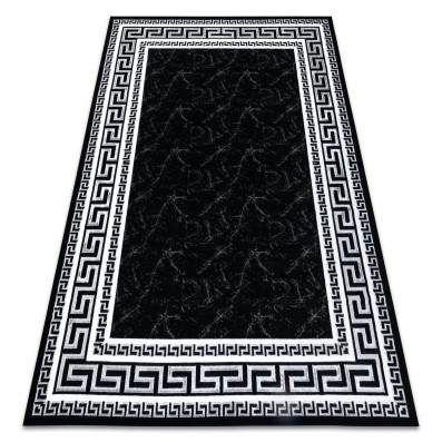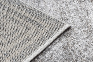Biało-szary dywan z klasycznym wzorem greckiego klucza w ramce, który nada salonowi elegancki, ponadczasowy charakter.