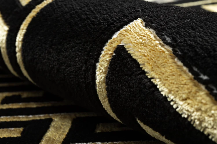 Złoty dywan z tradycyjnym wzorem greckiego klucza w ramce, który doda korytarzowi elegancki, klasyczny charakter.
