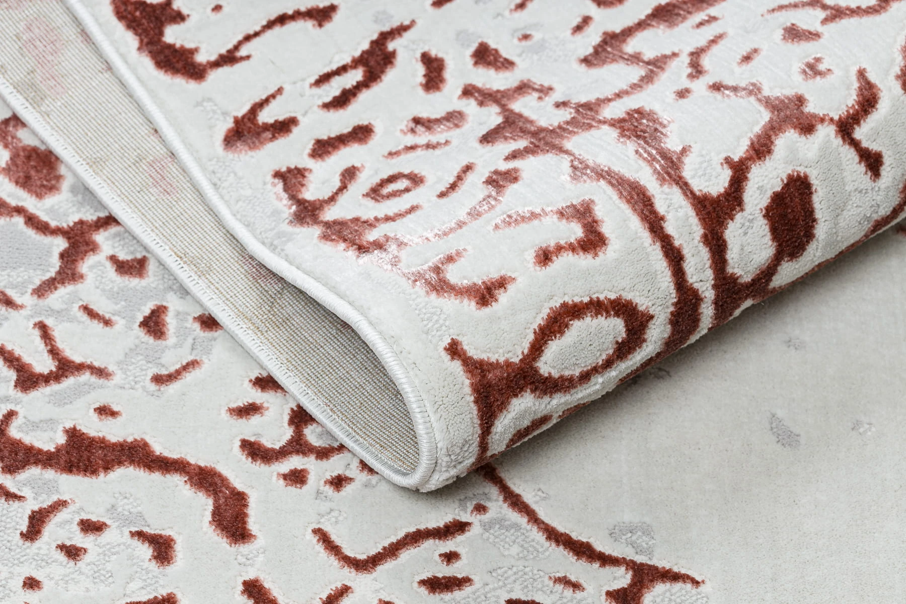 Biało-różowy dywan z abstrakcyjnym wzorem, który wniesie do wnętrza delikatny, kobiecy akcent.