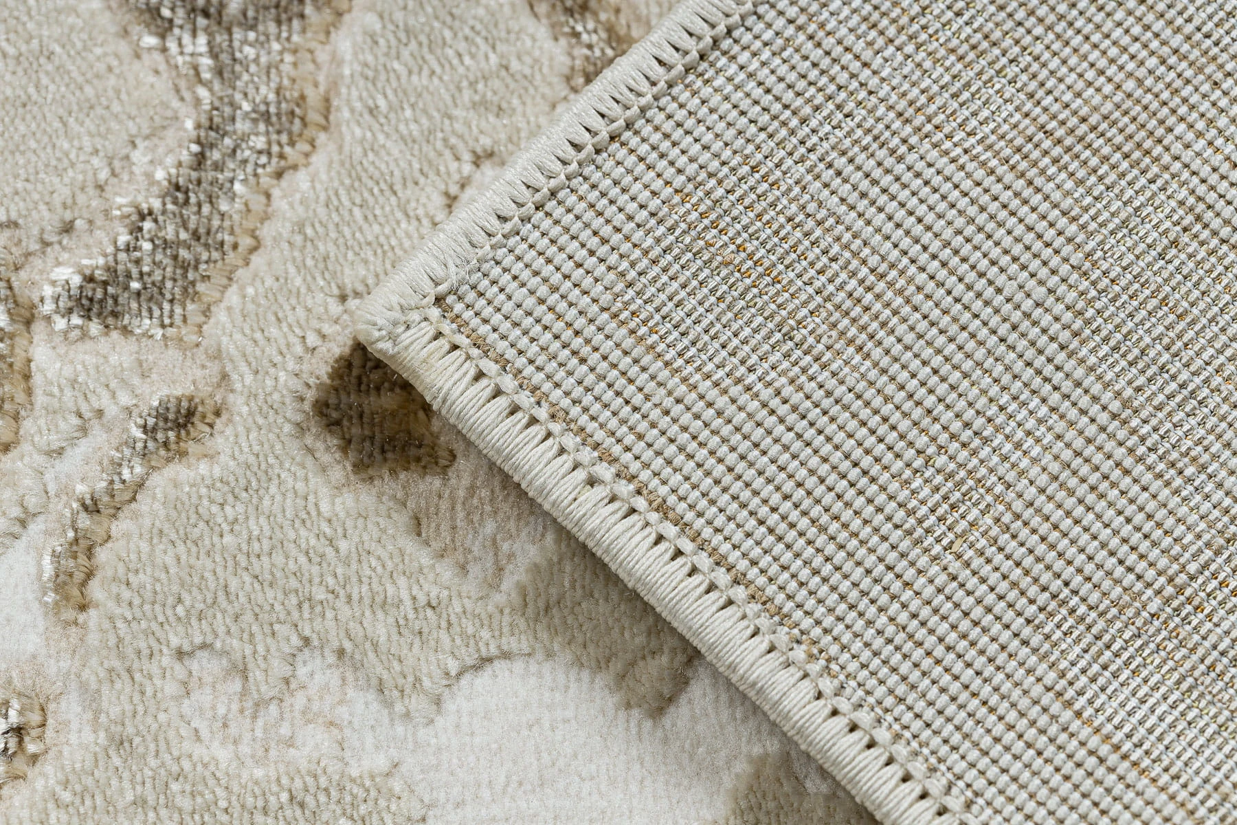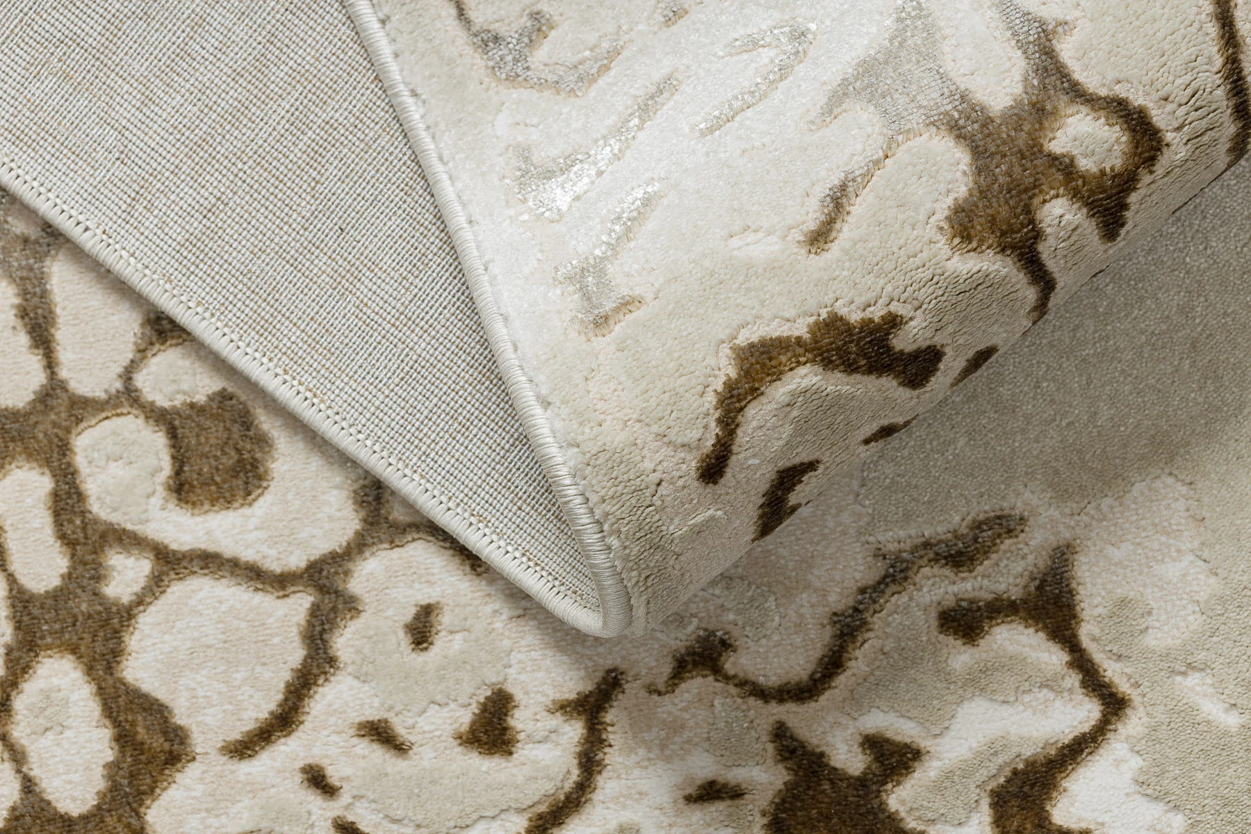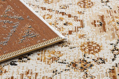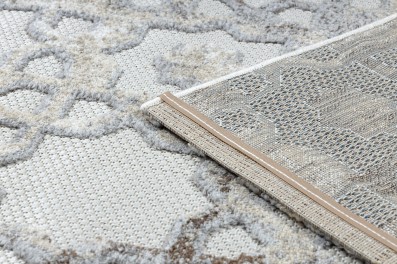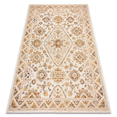 Kremowy dywan z abstrakcyjnym wzorem w złocistych akcentach, który doda wnętrzu ciepłą elegancję.