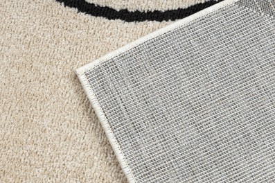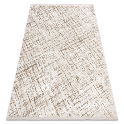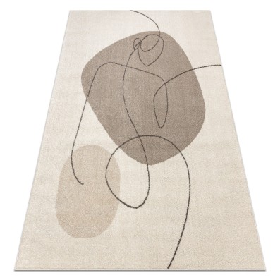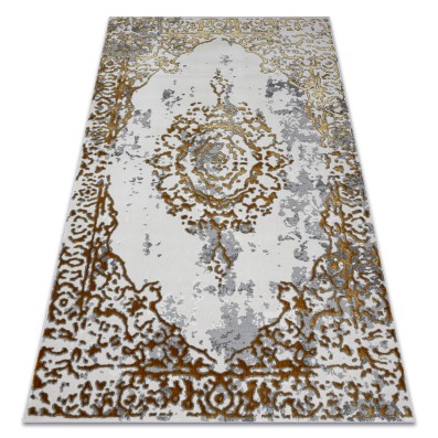 Kremowy dywan z abstrakcyjnym wzorem i złotymi detalami, który wprowadzi do salonu elegancki i ciepły charakter.
