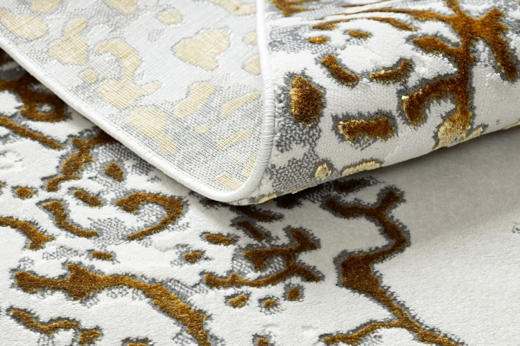 Złoto-biały dywan z abstrakcyjnym wzorem, który wprowadzi do salonu elegancki i ciepły akcent.