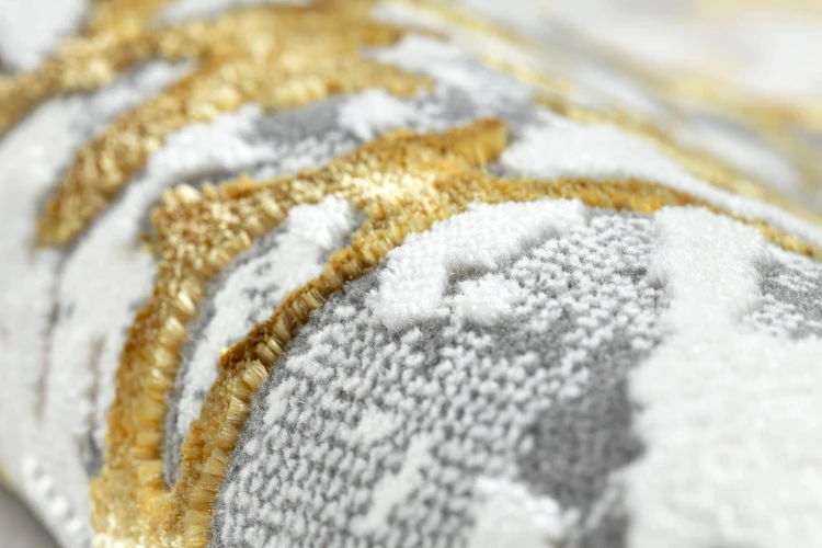 Złoto-biały dywan z abstrakcyjnym wzorem, który wprowadzi do salonu elegancki i ciepły akcent.