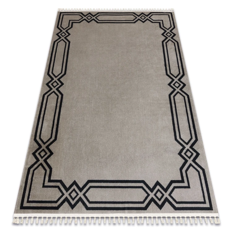 Beżowy dywan z delikatną ramką, który idealnie wypełni długi korytarz, dodając wnętrzu eleganckiego charakteru.