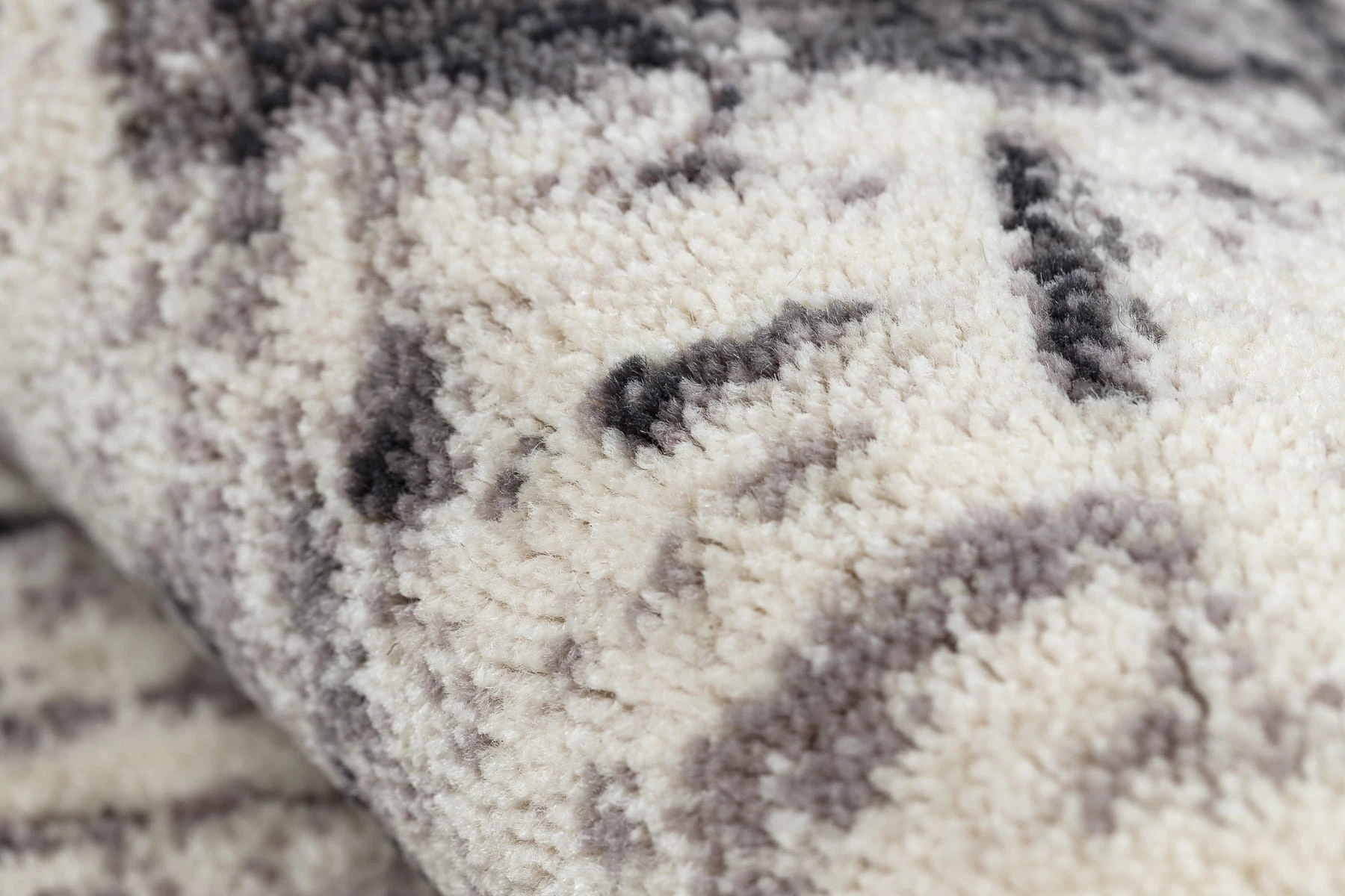 Beżowy dywan z abstrakcyjnym wzorem, który doskonale wpisze się w nowoczesne wnętrze, dodając mu ciepła i stylu.