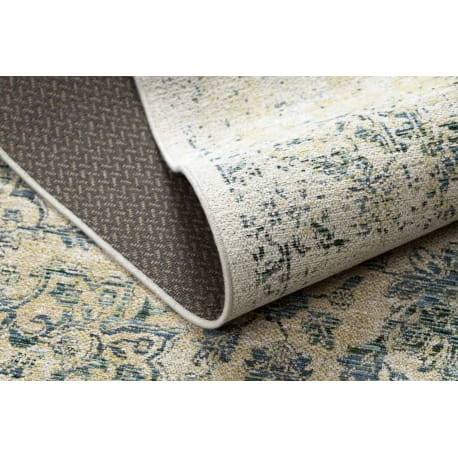 Kremowy dywan z abstrakcyjnym wzorem, który doskonale sprawdzi się w salonie lub pokoju, dodając wnętrzu subtelnej elegancji.