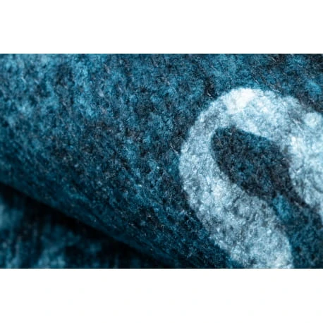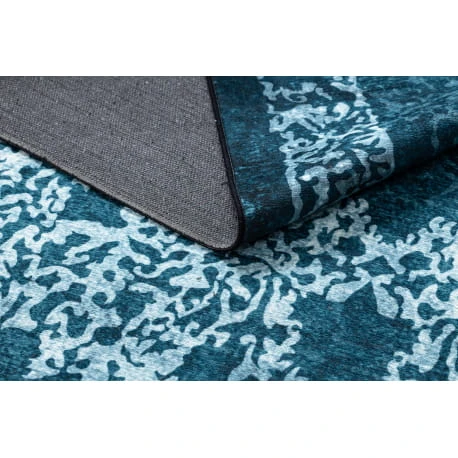 Niebieski dywan z dekoracyjną ramką, który wprowadzi do salonu elegancki akcent kolorystyczny.