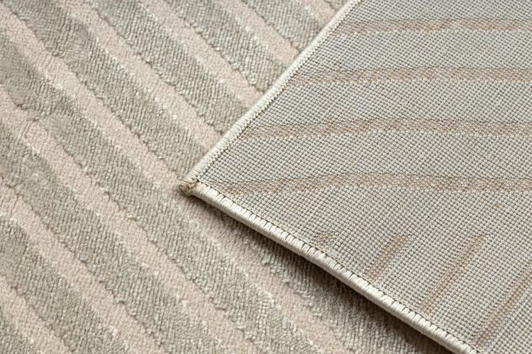 Jednokolorowy dywan w odcieniu taupe z krótkim runem, który doskonale sprawdzi się w salonie, tworząc spokojną i harmonijną atmosferę.