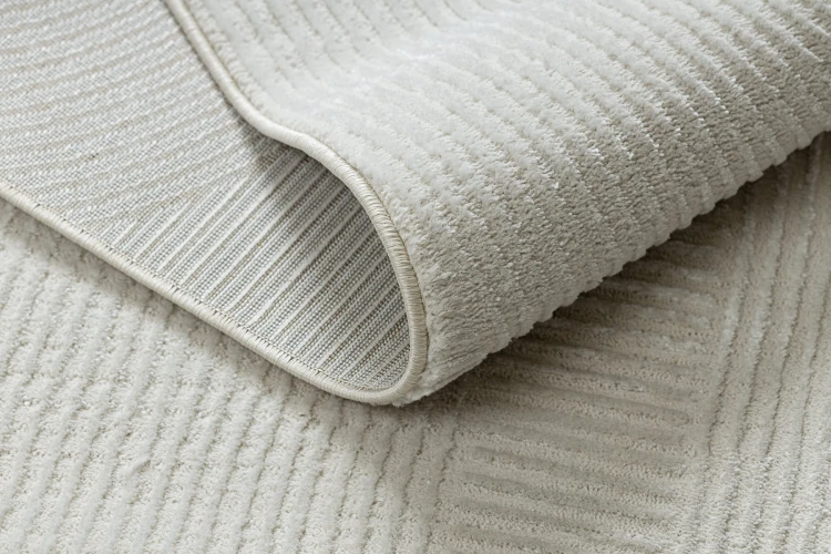 Kremowy dywan jednokolorowy, który doskonale sprawdzi się w salonie, tworząc spokojną bazę dla całej aranżacji.