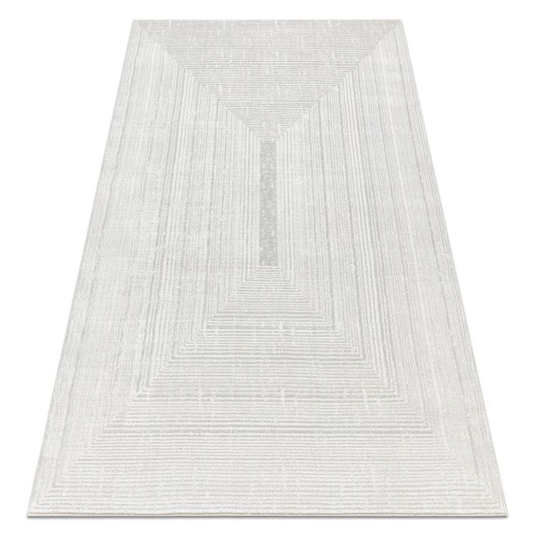 Kremowy dywan z geometrycznym wzorem abstrakcyjnym, który doskonale wpisze się w nowoczesny salon lub pokój.