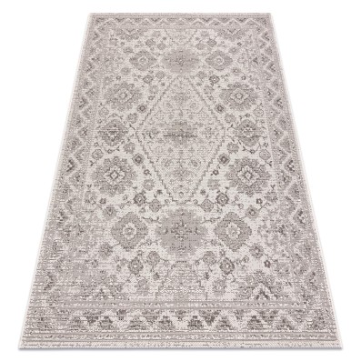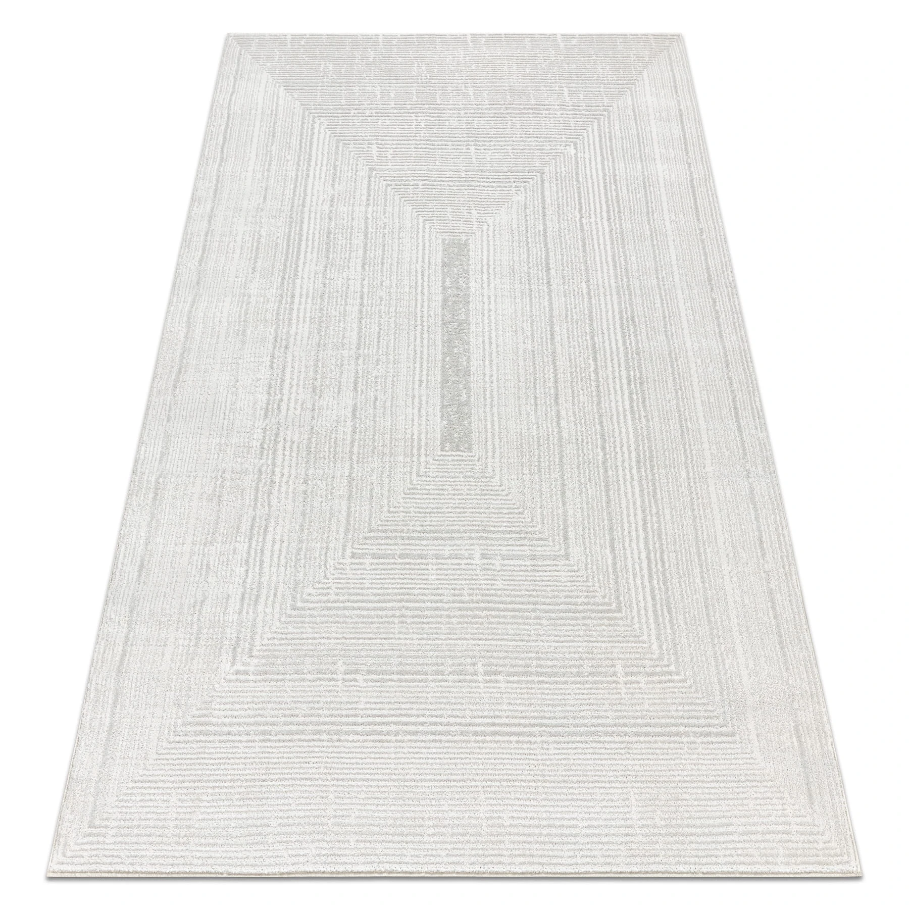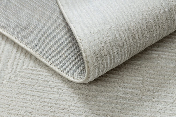 Kremowy dywan z abstrakcyjnym wzorem, który doskonale wypełni korytarz, nadając mu nowoczesny charakter.
