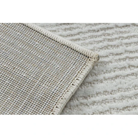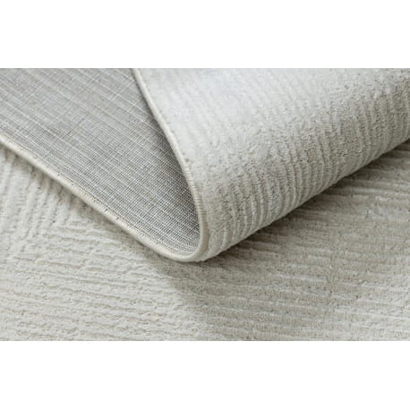 Kremowy dywan z abstrakcyjnym wzorem i strukturalną fakturą, który wprowadzi do salonu elegancki glamour.