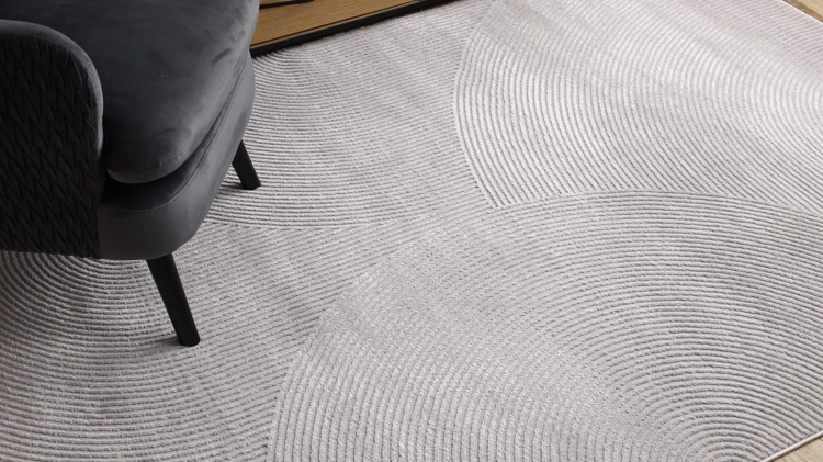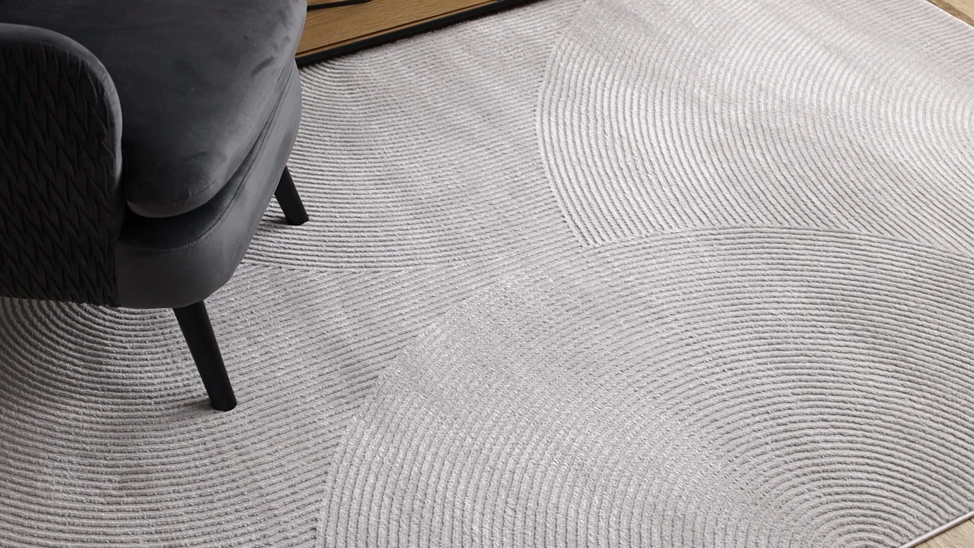 Jednokolorowy szary dywan o geometrycznym charakterze, który wprowadzi do salonu spokojną elegancję i uniwersalny styl.