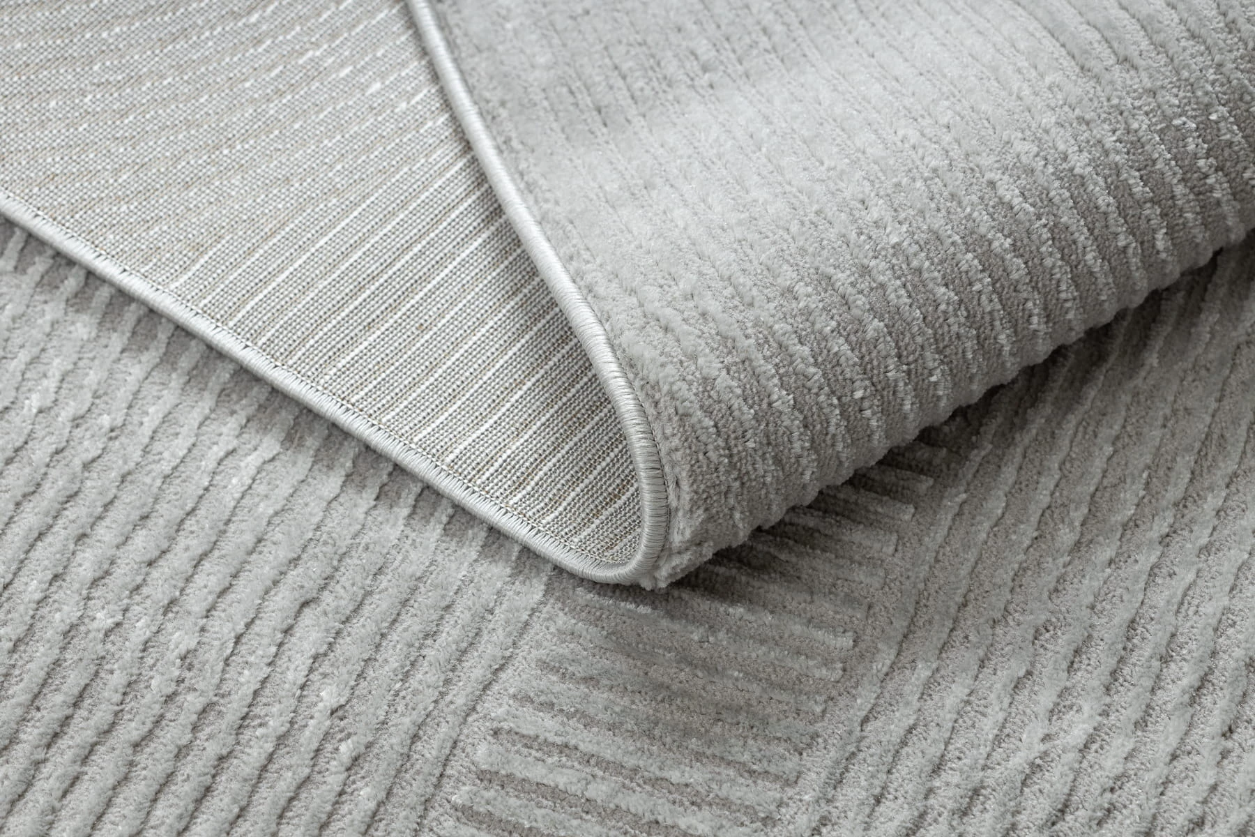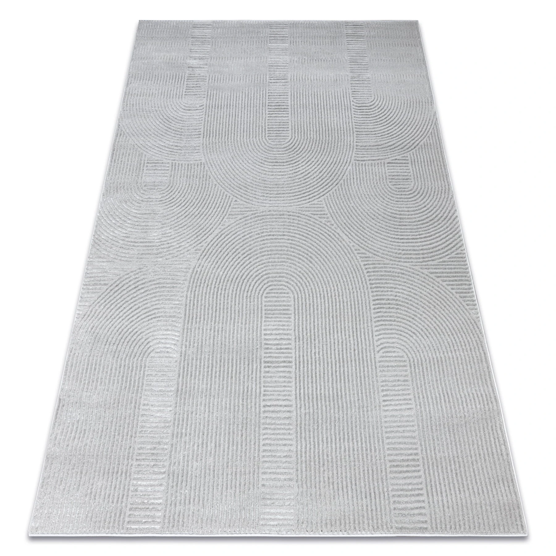 Szary dywan z geometrycznym wzorem, który doskonale wpisze się w nowoczesny salon lub pokój.