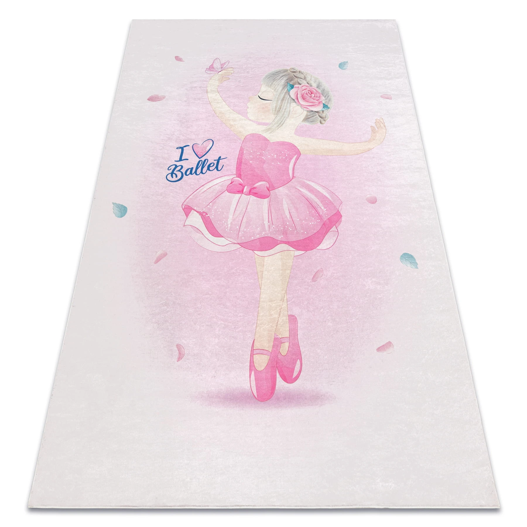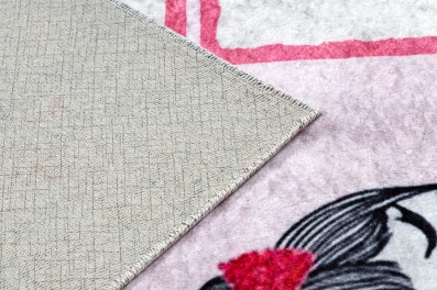 Różowy dywan z motywem baletnicy, idealny do pokoju dziewczynki, gdzie stworzy bajkową atmosferę pełną tańca i marzeń.