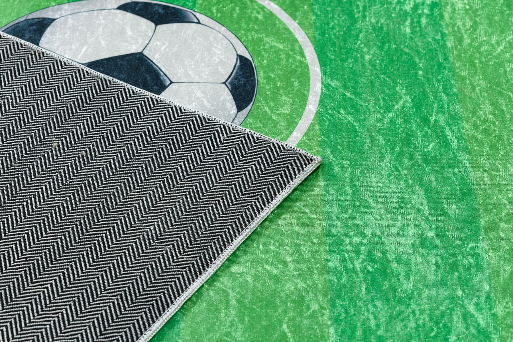 Zielony dywan z motywem boiska, który ożywi pokój dziecka i zachęci do aktywnej zabawy.