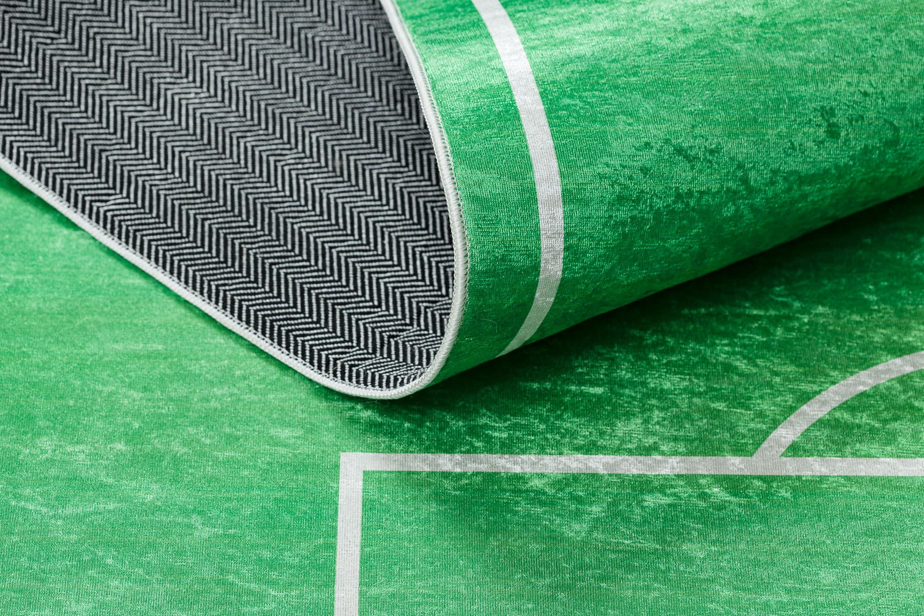 Zielony dywan z motywem boiska, który ożywi pokój dziecka i zachęci do aktywnej zabawy.
