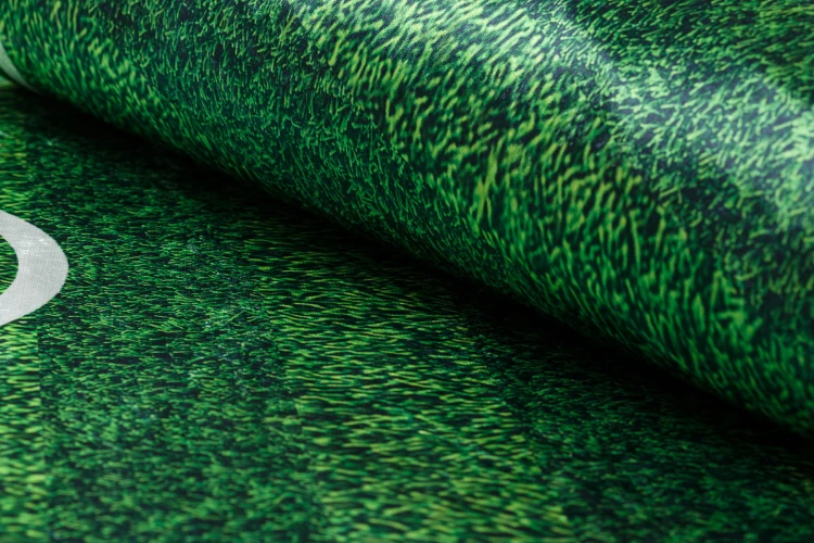 Zielony dywan z motywem boiska piłkarskiego, który zachęci do aktywnej zabawy i stworzy sportową atmosferę w pokoju dziecka.