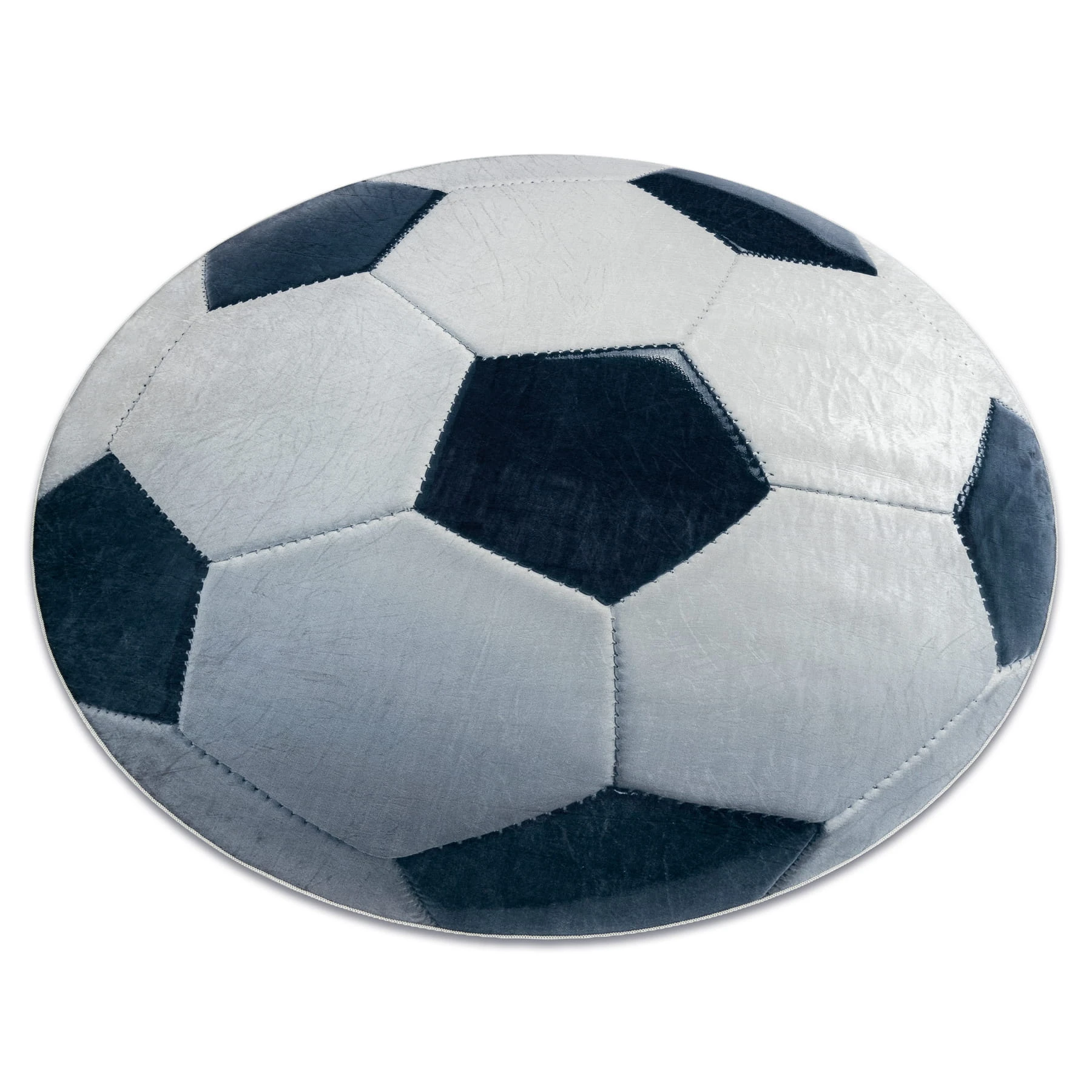 Czarno-biały dywan z motywem piłki, który ożywi pokój dziecka i zachęci do aktywnej zabawy.