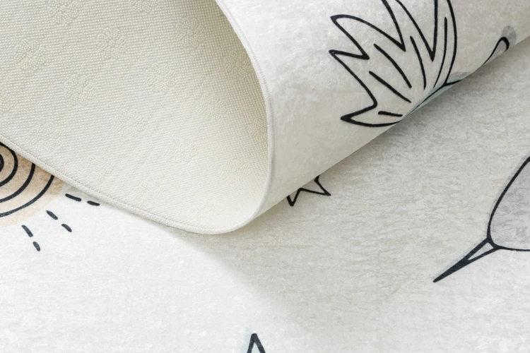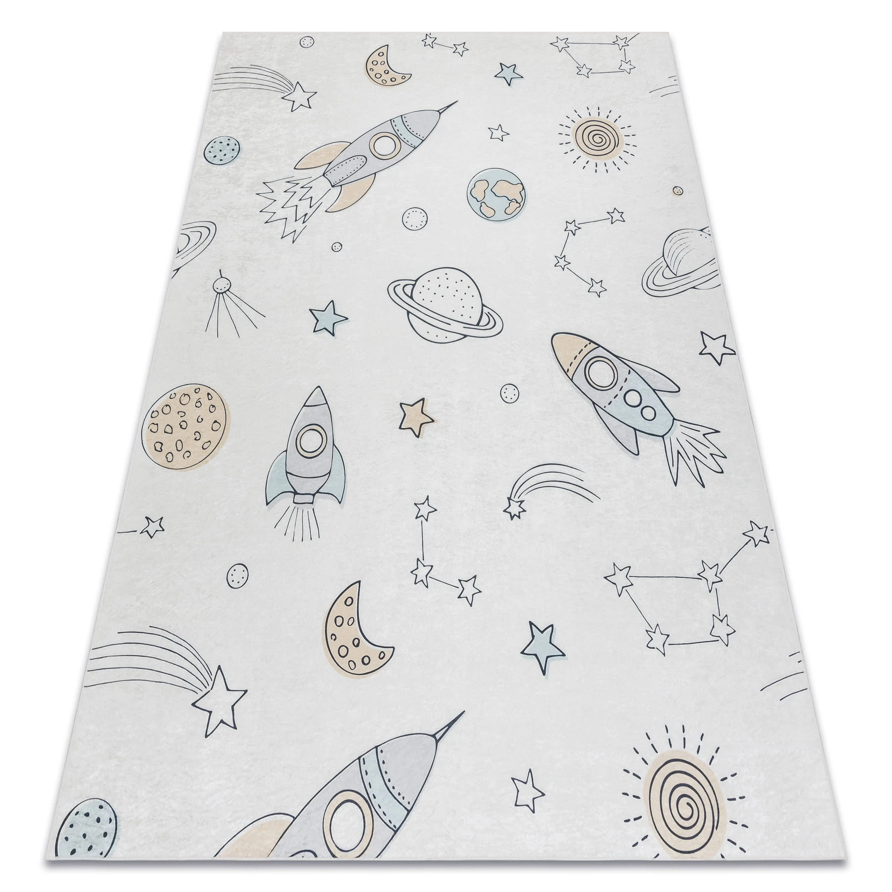 Kremowy dywan z motywem kosmosu, który ożywi pokój dziecka i zachęci do odkrywania tajemnic wszechświata.