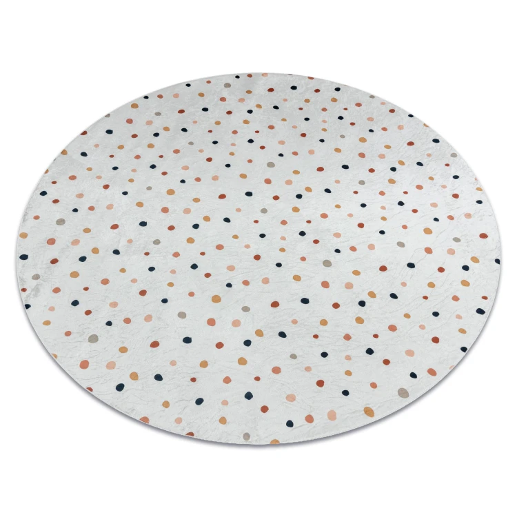 Biały dywan w brązowe kropki, który subtelnie ożywi pokój dziecka i stworzy przytulną przestrzeń do zabawy.