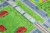 Szaro-zielony dywan z motywem miasta, który ożywi pokój dziecka i stworzy przestrzeń do kreatywnej zabawy.
