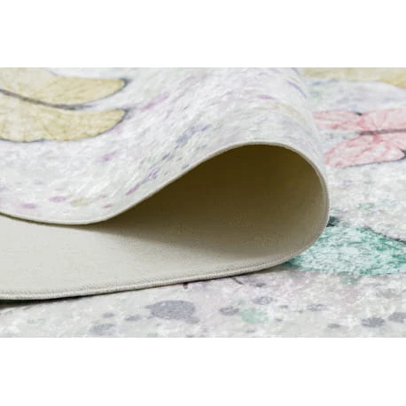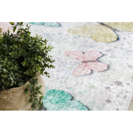 Kremowy dywan z motywem motyli, który subtelnie ożywi pokój dziecka i stworzy przestrzeń do zabawy.