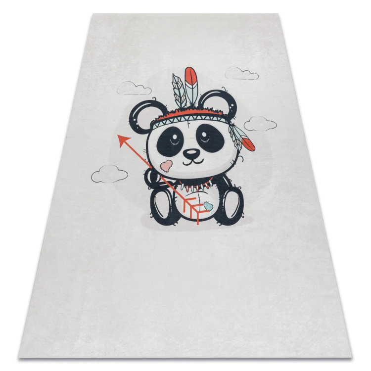 Kremowy dywan z motywem pandy, który doskonale sprawdzi się w pokoju dziecięcym, dodając mu radosnego charakteru.