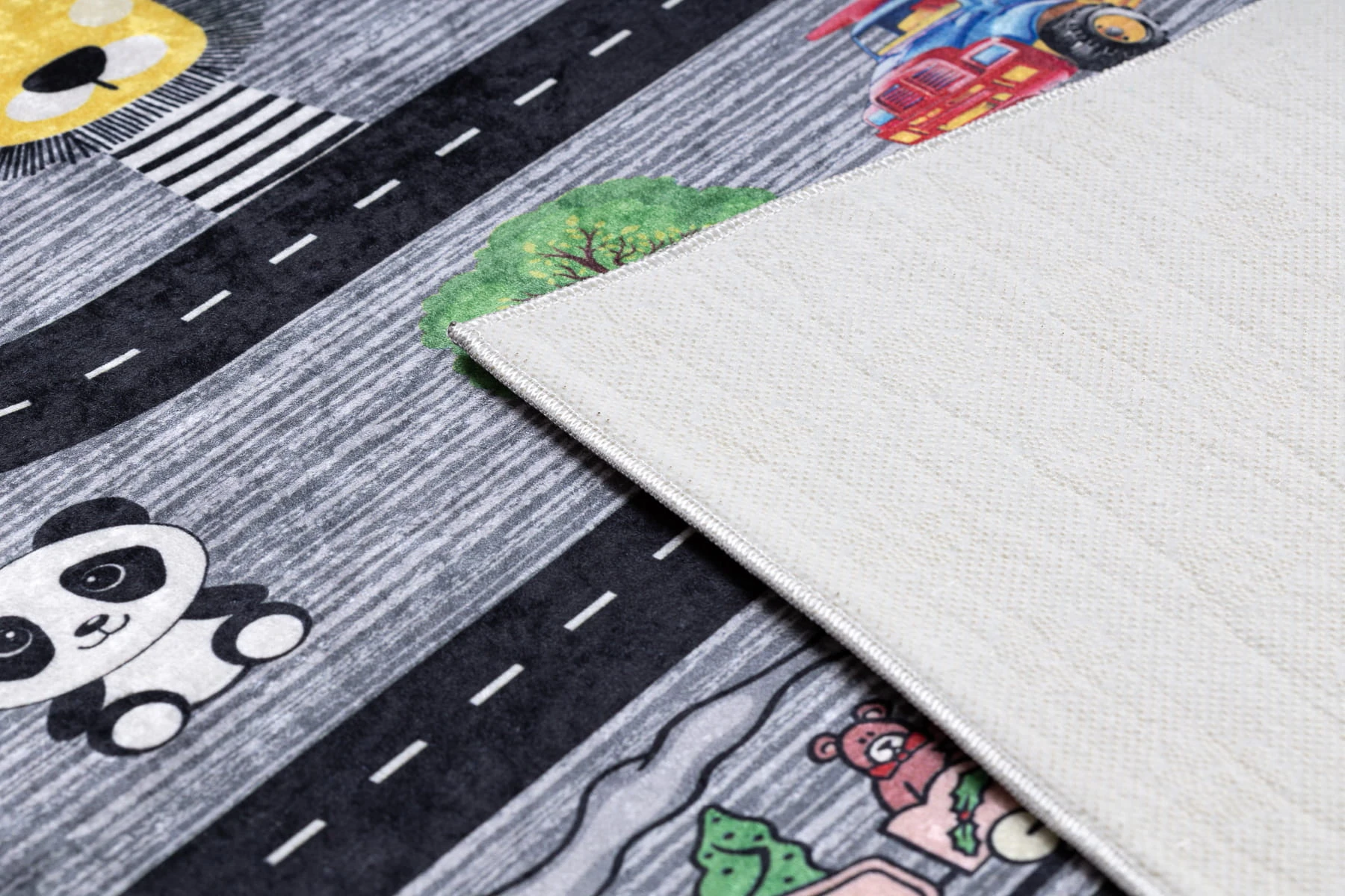 Wielokolorowy dywan z motywem ulic i dróg, który stworzy idealną przestrzeń do zabawy samochodzikami i rozwinie wyobraźnię dziecka.