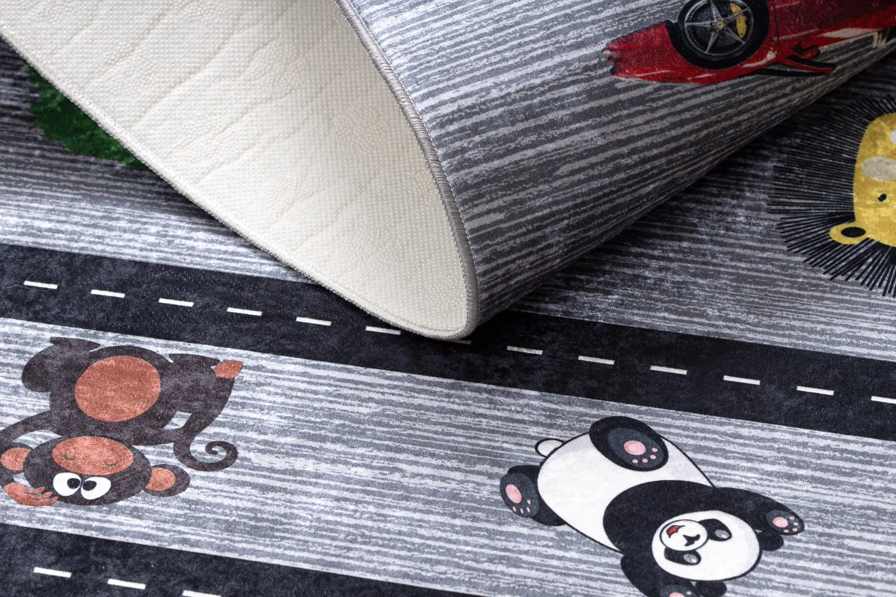 Wielokolorowy dywan z motywem ulic i dróg, który stworzy idealną przestrzeń do zabawy samochodzikami i rozwinie wyobraźnię dziecka.