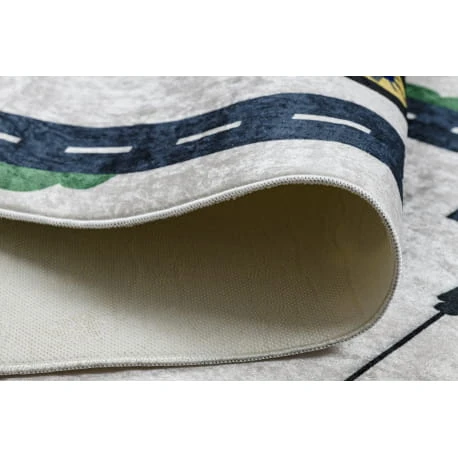 Kremowy dywan z motywem ulic i samochodów, który stworzy idealną przestrzeń do zabawy i rozbudzi wyobraźnię dziecka.
